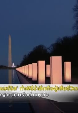 นายโจ ไบเดน พร้อมด้วยภริยา จิล ไบเดน กับนางคามาลา แฮร์ริส และสามี ดั๊ก เอมฮอฟฟ์ ทำพิธีเปิดดวงไฟจำนวน 400 ดวงที่สระน้ำรีเฟลคติง พูล (Reflecting Pool) หน้าอนุสรณ์สถานประธานาธิบดีอับราฮัม ลินคอล์น ในวันอังคาร เพื่อรำลึกถึงผู้เสียชีวิตจากโควิด-19 ในสหรัฐฯ จำนวนกว่า 400,000 คน