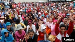คนงานโรงงานเครื่องนุ่งห่มในกัมพูชาหลายหมื่นคนประท้วงหลังจากรัฐบาลขึ้นค่าแรงให้ต่ำกว่าที่คาด