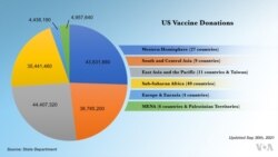 ข้อมูลจากกระทรวงการต่างประเทศสหรัฐฯ แสดงให้เห็นว่า ในเวลานี้ มีการจัดส่งวัคซีนเกือบ 172 ล้านโดส จากทั้งหมด 1,100 ล้านโดสที่สัญญาว่าจะบริจาคให้ทั่วโลก ไปยังกว่า 100 ประเทศแล้ว โดยส่วนใหญ่เป็นการนำส่งผ่านโครงการโคแวกซ์ ซึ่งเป็นความร่วมมือระหว่าง กลุ่มพันธมิตรวัคซีน กาวิ (Gavi) องค์การอนามัยโลก (WHO) และกลุ่มพันธมิตรนวัตกรรมการเตรียมความพร้อมรับการระบาด (Coalition for Epidemic Preparedness Innovations) รวมทั้งผ่านข้อตกลงระดับทวิภาคีจำนวนหนึ่ง