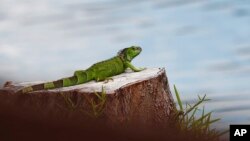 ที่เป็นเช่นนั้นก็เพราะเจ้าหน้าที่รัฐกำลังเร่งเร้าให้ประชาชนกำจัดกิ้งก่าอิกัวน่าตัวสีเขียวขนาดความยาวสูงสุด 5 ฟุต ที่กำลังเเพร่พันธุ์อย่างรวดเร็ว ทั้งๆ ที่ไม่ใช่สัตว์ประจำถิ่นของฟลอริด้า