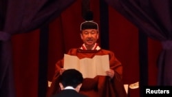 สมเด็จพระจักรพรรดินารูฮิโตะ เสด็จขึ้นครองราชย์อย่างเป็นทางการเมื่อวันอังคาร ที่กรุงโตเกียว ของญี่ปุ่น ท่ามกลางบุคคลสำคัญระดับโลกที่เข้าร่วมโอกาสสำคัญนี้ ขณะที่ริ้วขบวนเฉลิมฉลองเลื่อนออกไปเป็นวันที่ 10 พฤศจิกายนนี้ เพื่อเป็นการให้เกียรติผู้เสียชีวิตหลายสิบคนจากเหตุไต้ฝุ่นฮากิบิสที่พัดถล่มญี่ปุ่นไม่กี่สัปดาห์ก่อน