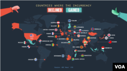 รายงานการวิเคราะห์บนเว็บไซต์ 538 ของโดยสถานีข่าว เอบีซีนิวส์ ระบุด้วยว่า ผลการเลือกตั้งจากทั้งประเทศร่ำรวยและประเทศยากจนแสดงให้เห็นว่า กว่า 80% ของพรรคที่อยู่อำนาจเสียที่นั่งในสภาหรือไม่ก็สูญแรงสนับสนุนจากประชาชนเมื่อเทียบกับการเลือกตั้งครั้งก่อน