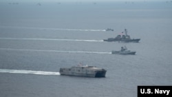 ก่อนหน้านี้ กองทัพเรือสหรัฐฯ เคยส่งเรือรบหลายลำเดินทางผ่านน่านน้ำที่มีความขัดแย้งต่างๆ รวมทั้งในแถบทะเลจีนใต้ที่จีนกล่าวอ้างกรรมสิทธิ์