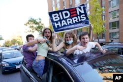 วีโอเอคาดการณ์จำนวนคณะผู้เลือกตั้งที่โจ ไบเดน ได้รับอยู่ที่ 253 ยังไม่ถึงเส้นชัยที่ 270 เสียง ส่วนประธานาธิบดีทรัมป์ถูกคาดว่ามีจำนวนคณะผู้เลือกตั้ง 214 เสียงอยู่ในมือ