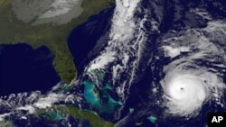 คุณ Alexander MacDonald ผู้อำนวยการสำนักงาน NOAA ชี้ว่าภาพถ่ายดาวเทียมของพายุลูกใหญ่ที่พัดเข้าจีนในเดือนตุลาคมปีพุทธศักราช 2553 อยู่บนจอด้านซ้ายมือ ส่วนบนจอด้านขวามือเป็นภาพพายุที่มีลักษณะคล้ายกันซึ่งระบบอมพิวเตอร์ออกแบบขึ้นมา