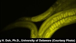 ที่มหาวิทยาลัย Delaware คุณ Chandran Sabanayagam นักวิทยาศาสตร์พัฒนาอุปกรณ์เลียนแบบสภาพเกือบไร้แรงโน้มถ่วงโลกขึ้นมาเพื่อใช้ทดสอบว่าหนอน C. Elegans ปรับตัวอย่างไรหากอาศัยอยู่ในสภาวะไร้น้ำหนักเหมือนกับลอยอยู่ในอวกาศ